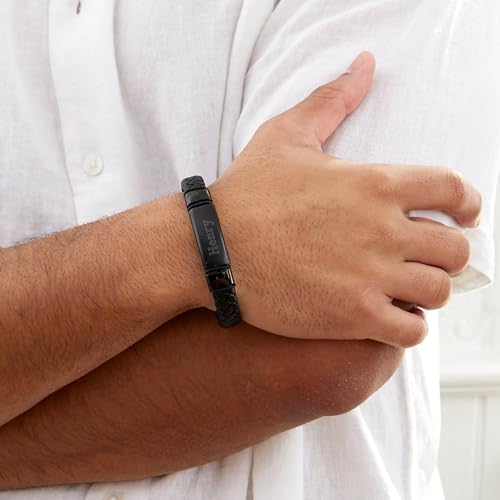 EVE'S ADDICTION Custom Engraved Bracelets For Men - Men's Leather Black Id Bracelet - Name Bracelet - Personalize Men's Bracelet - Men's Jewelry - Birthday Gift for Him - Gifts for Dad 6