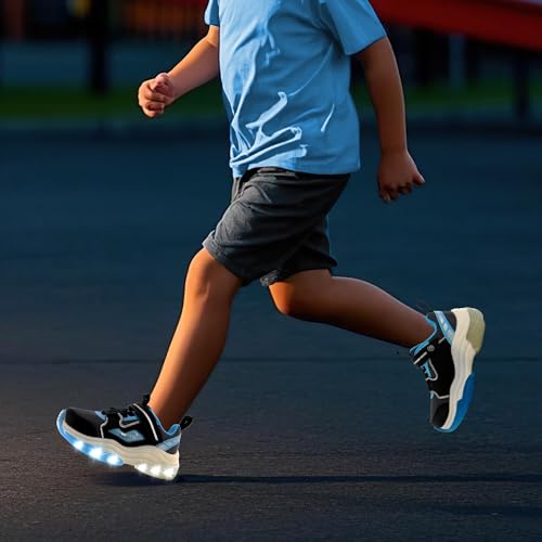 • Easy to Wear & Anti-Slip: Featuring adjustable Velcro straps, big kids shoes no need to tie shoelaces, and easy for kids to put on and take off by themselves. Our boys light up shoes uses an excellent non-slip sole with grip and slip-resistant properties to ensure your child's safety.