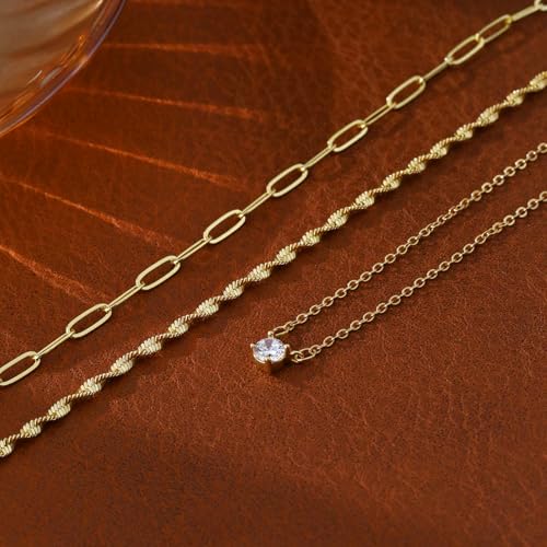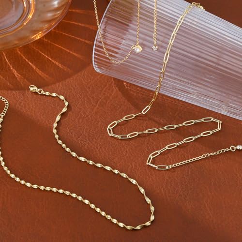 ASCOMY Layered Necklaces for Women Gold Necklace 14K Gold/Silver Plated Pendant Necklace Layered Cross Necklace Paperclip Rope Bead Box Satellite Dot Chain Necklaces Gold Choker Trendy Jewelry Gift 4