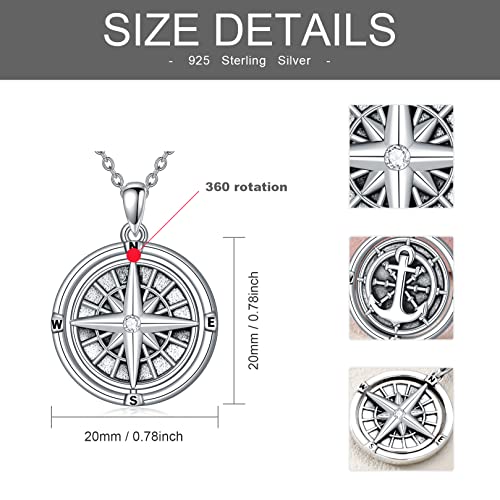 HOT ! Rotating Compass Nautical S925 Sterling Silver Necklace - Inspirational Graduation and Retirement Gift for Women, Travel or Long Distance Jewelry
