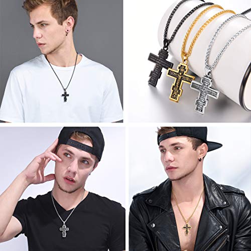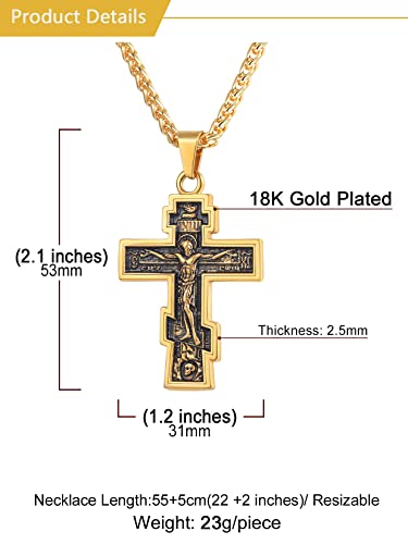 U7 Russian Orthodox Cross Pendant/Praying Hands/Ichthys Sign for Men Women Stainless Steel 18K Gold Plated Jesus Pendant Christian Religious Necklaces, Length 22" Silver Black Gold 5