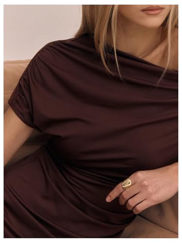 More information about GORGLITTER Women's Asymmetrical Neck Ruched Bodycon Maxi Dress One Shoulder Short Sleeve Dinner Cocktail Long Dresses
