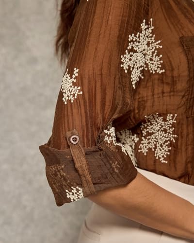 • This lightweight,sheer blouse features an allover floral embroidery pattern for a feminine, bohemian look