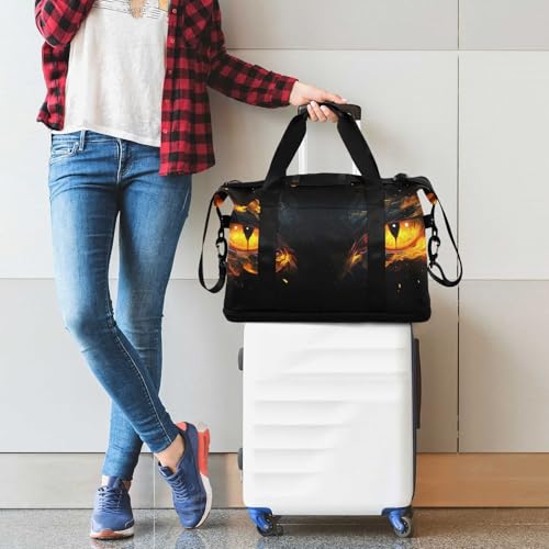 Angry Fire Dragon Eyes Gym Bag for Women Sport Travel Duffel Bag Shoulder Weekender Overnight Bags with Wet Pocket & Shoe Compartment 6