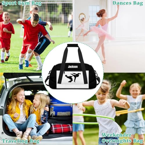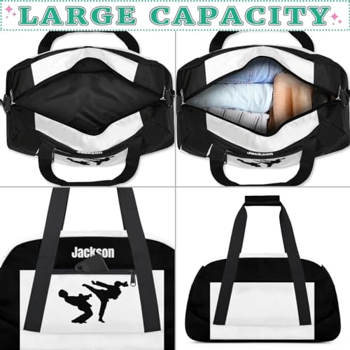 HOT ! Personalized Custom Kids Duffel Bags for Boys Teen Girls, Customized Sports Gym Bag Travel Duffle Bag, Overnight Weekender Sleepover Bag, Martial Arts Taekwondo White Section 43