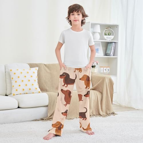 ZZXXB Lovely Dachshund Boys Long Pants gentle Trousers Elastic Waist Kids Lounge Bottoms with Pockets S-XL