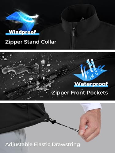 Mens Windproof Golf Vest Outerwear Fleece Lined Softshell Sleeveless Lightweight Jacket