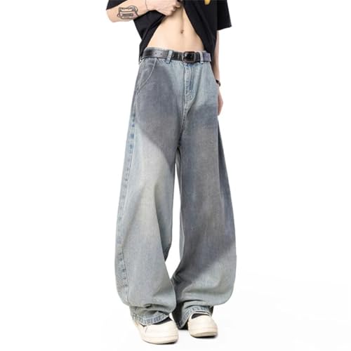 Men Jeans Dirty-Dying Contrast Color Washing Design Bottom Straight Leg Denim Pants